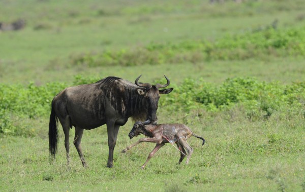 Wildebeest Licking Just Born Baby