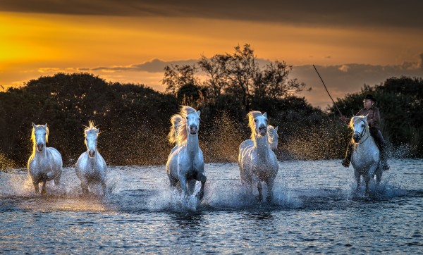Camargue Horses At Sunset 32