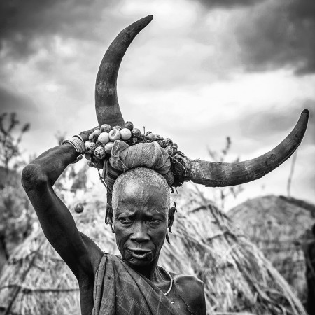 "MURSI WOMAN WITH BIG HORNS"